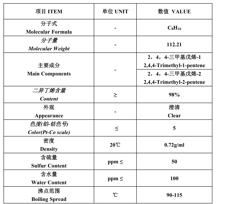 Application: tert octylphenol, isononyl alcohol, antioxidant (ODPA), tert octylamine, polymerization inhibitor, plasticizer, used as a synthetic rubber adhesive, various surfactants, UV absorbers, PVC stabilizers, phenolic resin and epoxy resin modifier